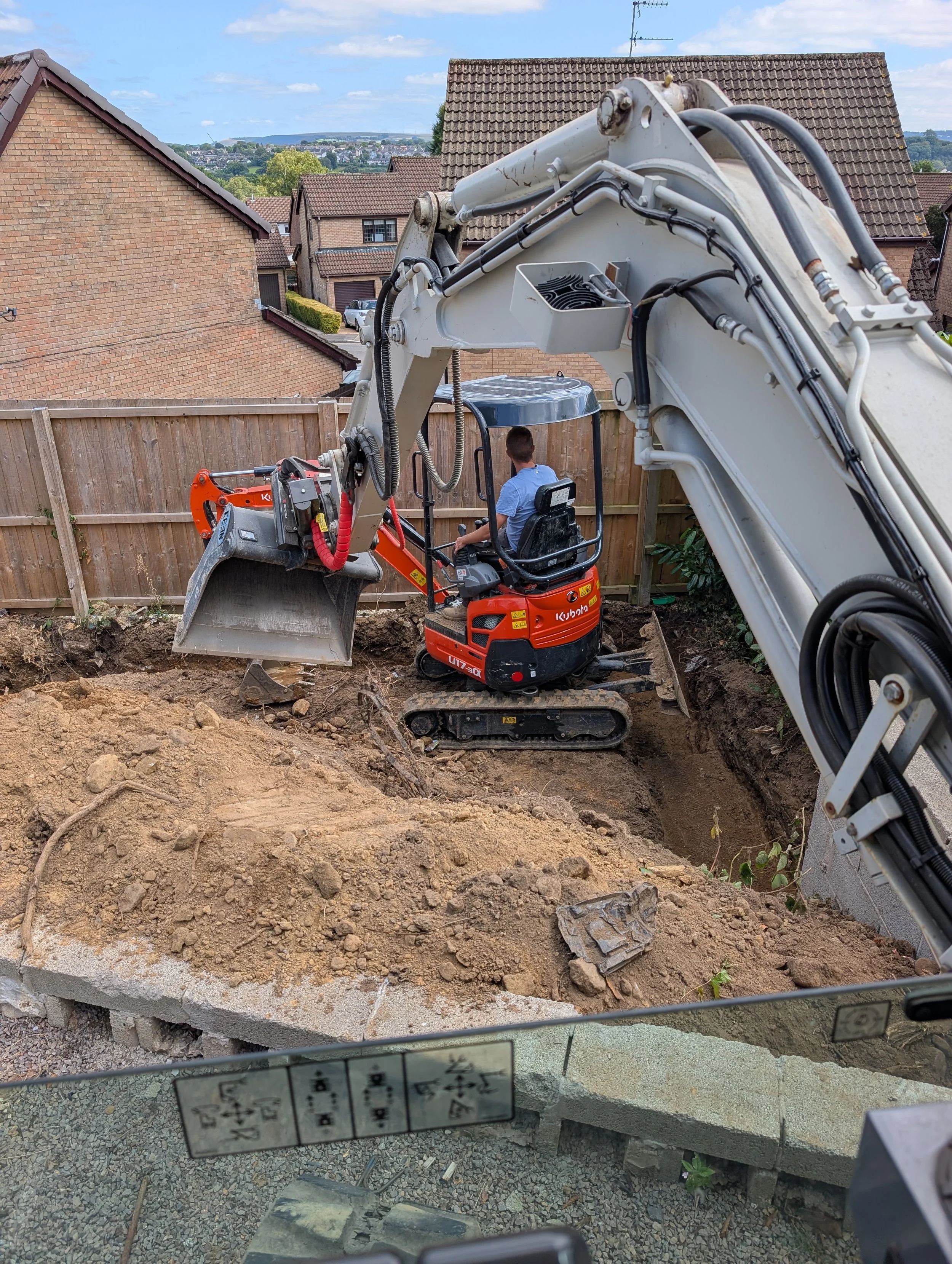 We offer a wide range of groundwork services including, Site clearance, Demolition, Drainage, Footings, Spoil removal, Hardcore, Concrete and much more. With diggers from the smallest to the biggest, there isn’t much we can't do. If you think access is an issue, it usually isn’t. Give us a call and we will be happy to help.